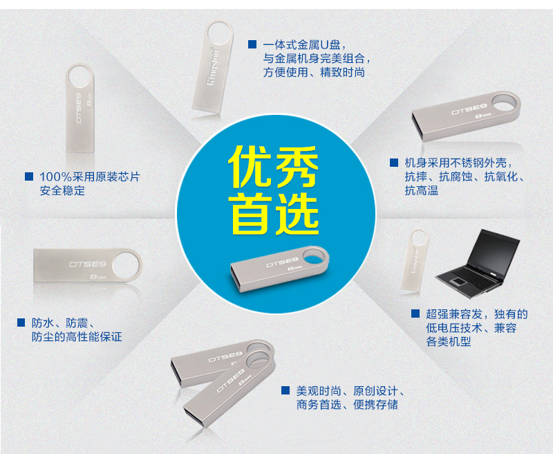 商品名稱:金士頓DTSE9 16GU盤超薄迷你防水優盤金屬銀創意外觀
