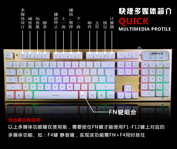 力美TX30鍵盤金屬懸浮 電腦筆記本七彩背光游戲機械手感鍵盤
