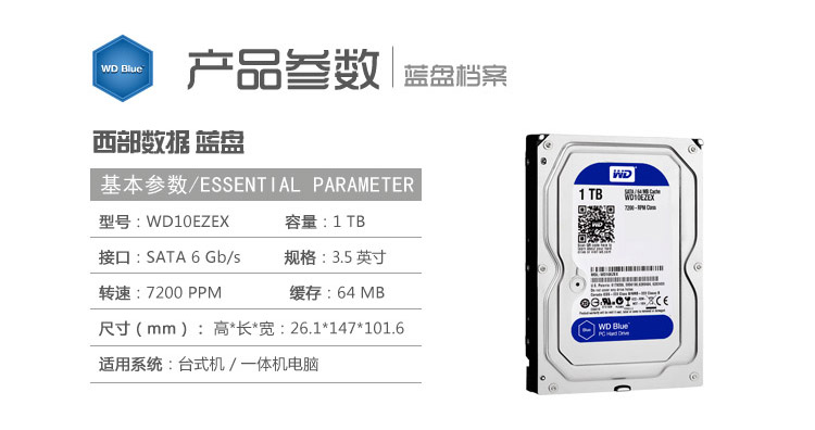 商品名稱:WD/西部數據 WD10EZEX 西數1t 臺式組裝電腦機械硬盤 1000G 藍盤