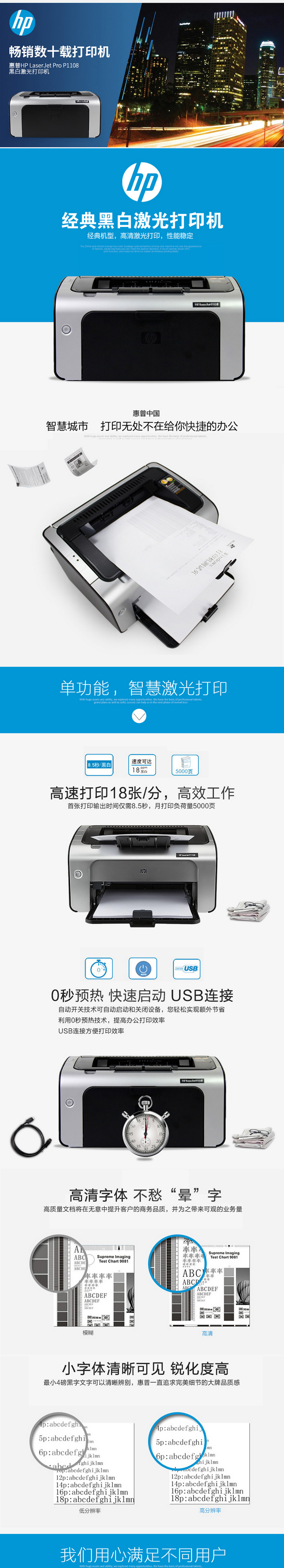 HP LaserJet Pro P1108 激光打印機; HP LaserJet 黑色硒鼓(約 1500 頁); 電源線; 打印機軟件與文檔 CD; 入門指南; 支持宣傳頁; USB 連接線(僅亞太地區)