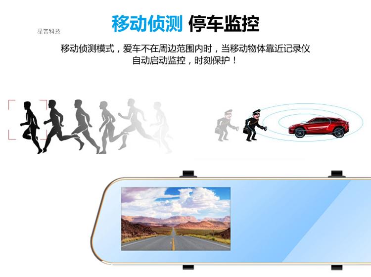 X302S后視鏡單頭4.3寸170度廣角1920P高清夜視款行車記錄儀