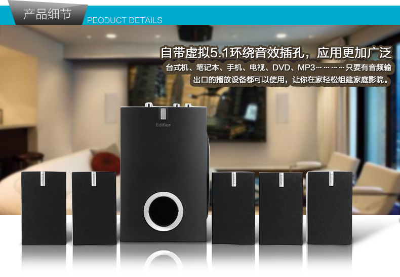 商品名稱:Edifier/漫步者 R351T07電腦多媒體音箱 5.1家庭影院音響重低音炮