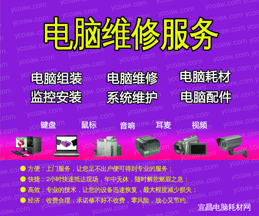 復印機維修、網絡調試、監控工程、超市收銀系統,KTV臺歌系統維護,網筆記本復印機維修、顯示器維修、數據恢復,主板維修、硬盤修理。局域網的組建維護及各種寬帶多機共享上網,承接單位復印機維修、網絡包年維護服務(即IT外包或兼職網管) 收售二手復印機等服務;要你一個電話,讓您足不出戶便可得到專業的服務。