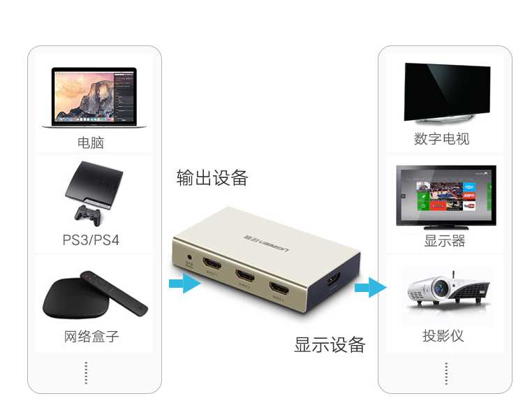 多個HDMI設備接入一個顯示器或電視機投影等設備
